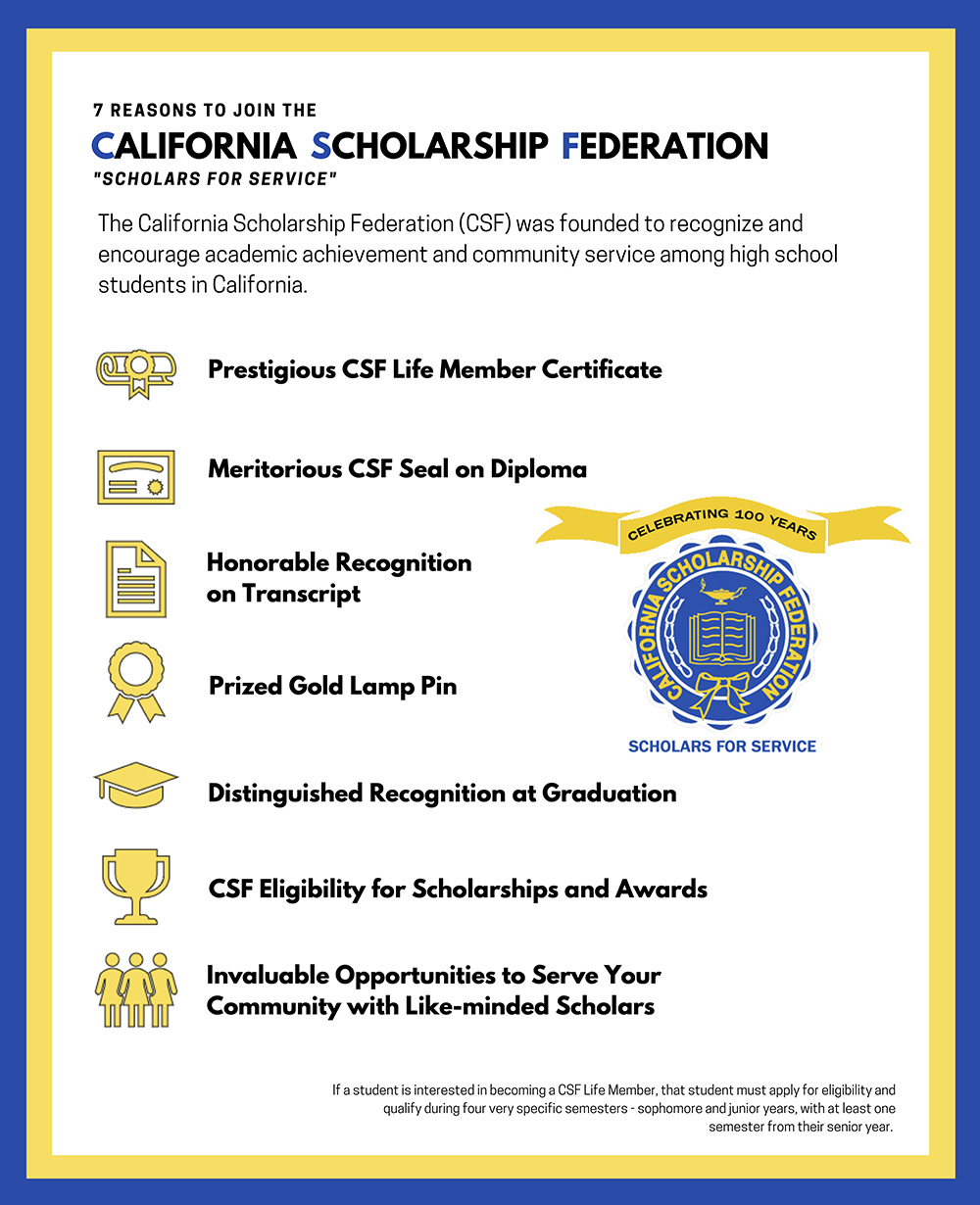 - Meet the membership requirements laid forth by the California Scholarship Federation (see below)
